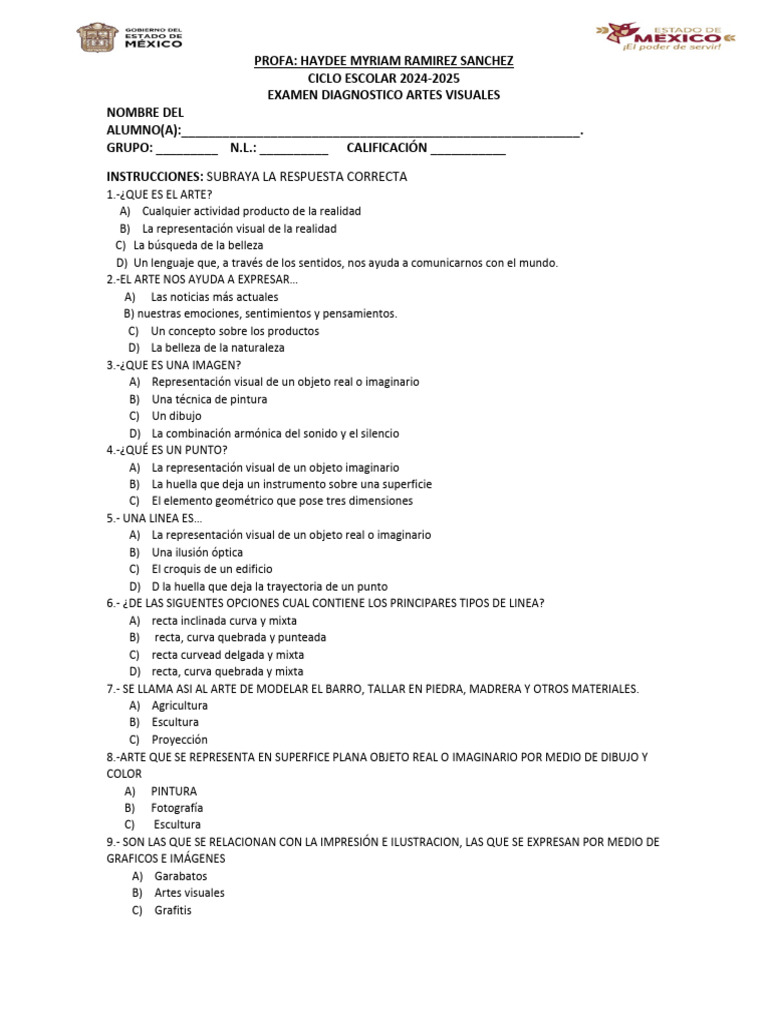 EXAMEN DIAGNOSTICO ARTES VISUALES