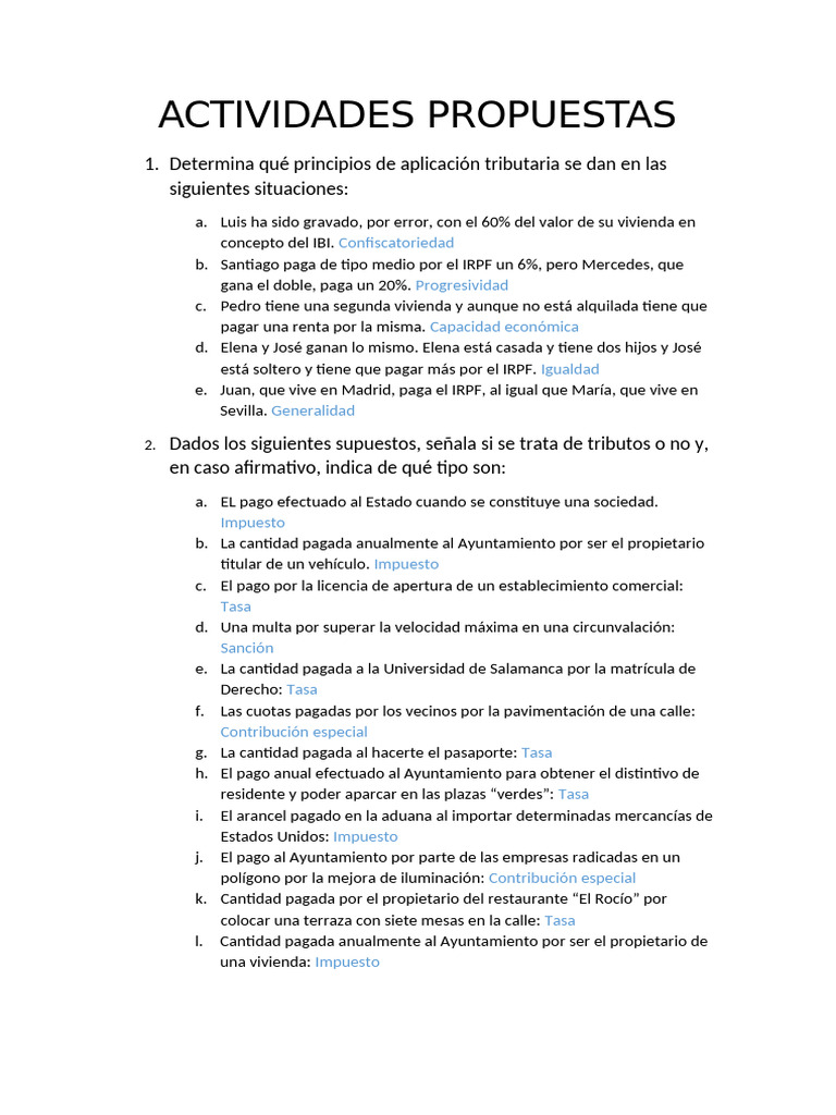 1. Indica el tipo de tributo que se genera en los siguientes supuestos: