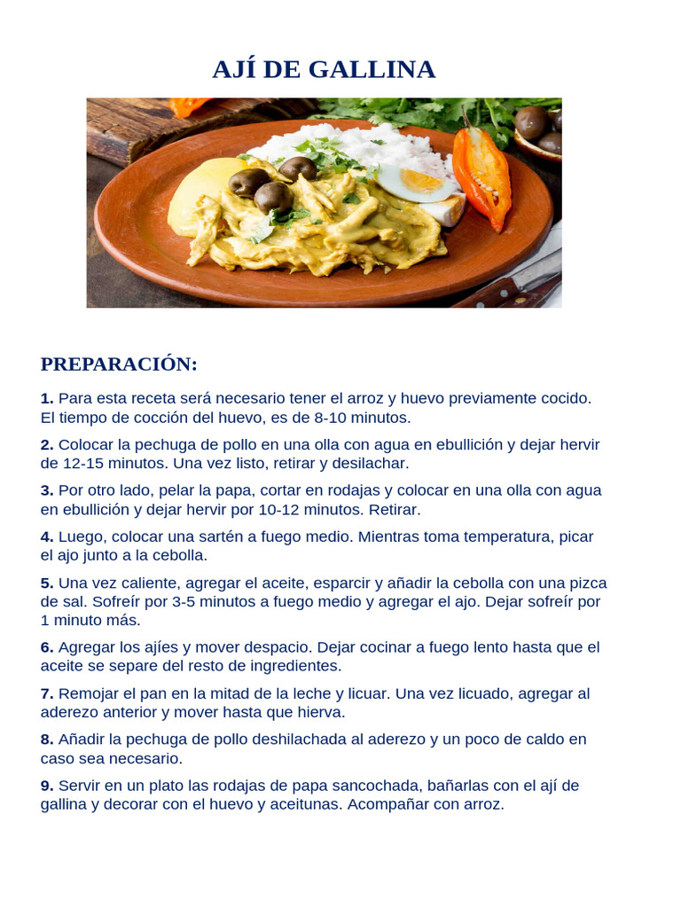 gallina y decorar con el huevo y aceitunas. Acompañar con arroz.