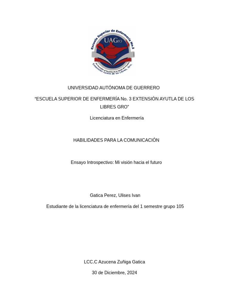 Mi nombre es Ulises Ivan, un joven de 19 años, estudiando la licenciatura en enfermería