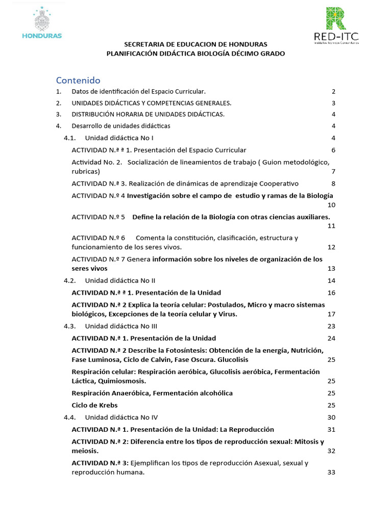 PLANIFICACIÓN DIDÁCTICA BIOLOGÍA DÉCIMO GRADO