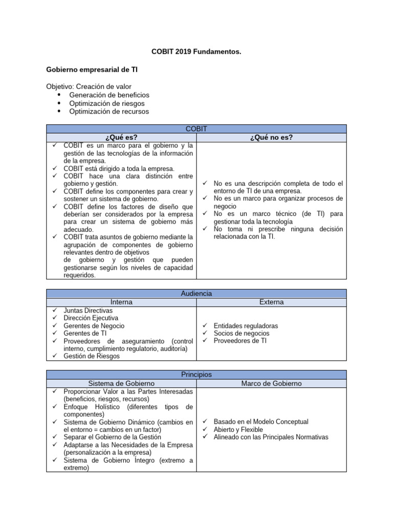 COBIT define los componentes para crear y entorno de TI de una empresa.