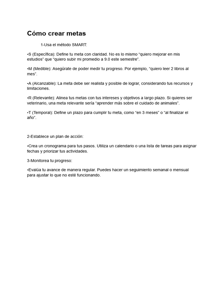 •R (Relevante): Alinea tus metas con tus intereses y objetivos a largo plazo. Si quieres ser