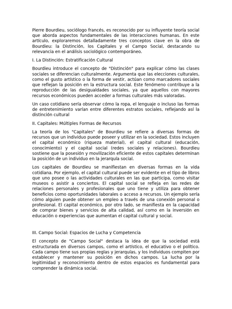 Bourdieu: la Distinción, los Capitales y el Campo Social, destacando su