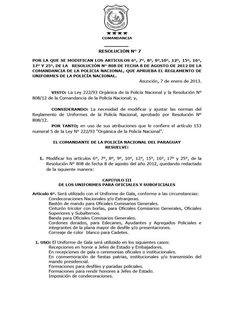 808/12 de la Comandancia de la Policía Nacional; y,