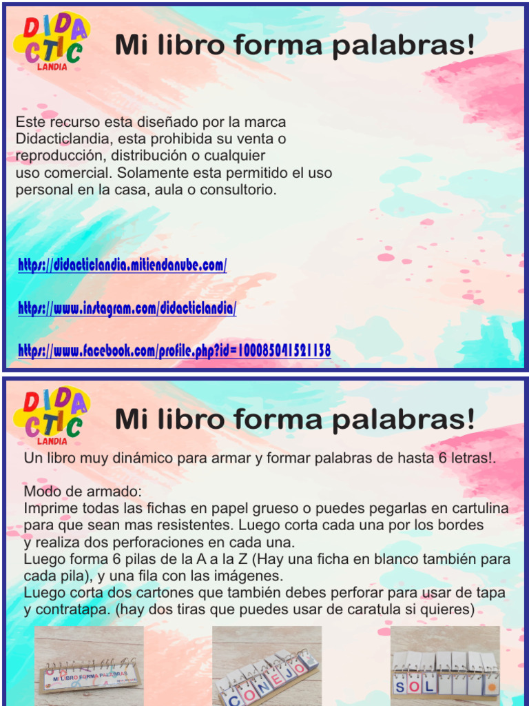 Un libro muy dinámico para armar y formar palabras de hasta 6 letras!.