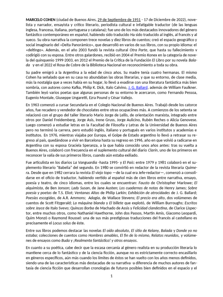 Marcelo Cohen: Innovador del Fantástico