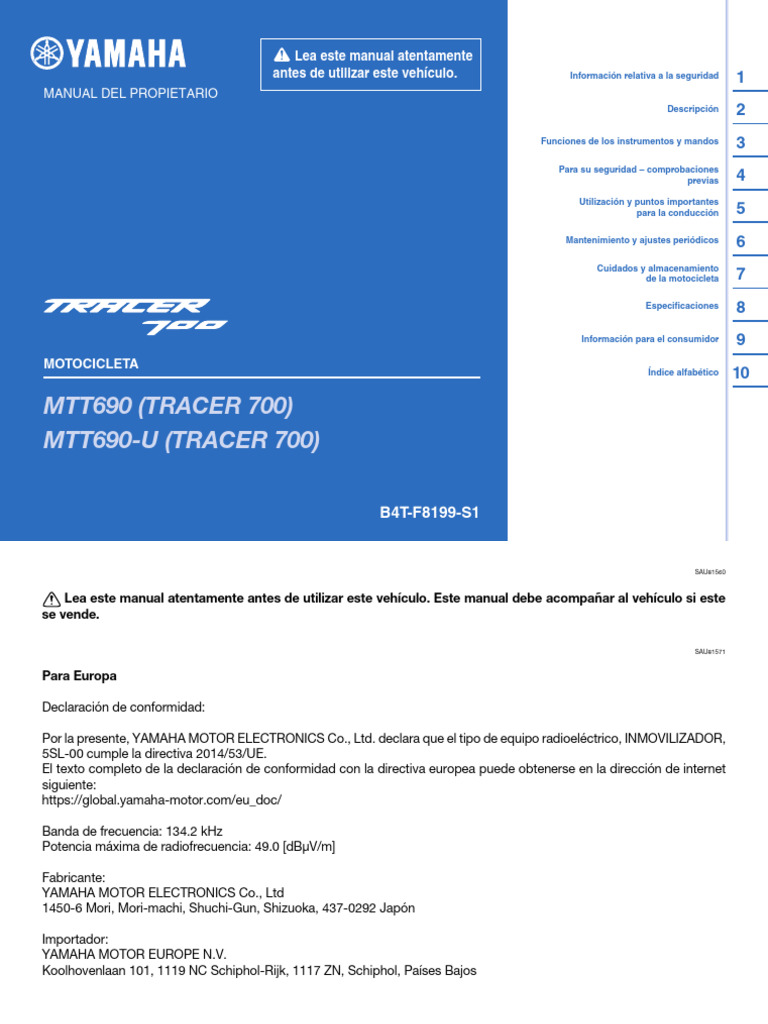 MTT690 (TRACER 700) MTT690-U (TRACER 700) : Manual Del Propietario