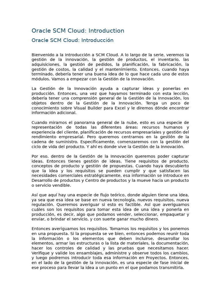 Bienvenido a la Introducción a SCM Cloud. A lo largo de la serie, veremos la