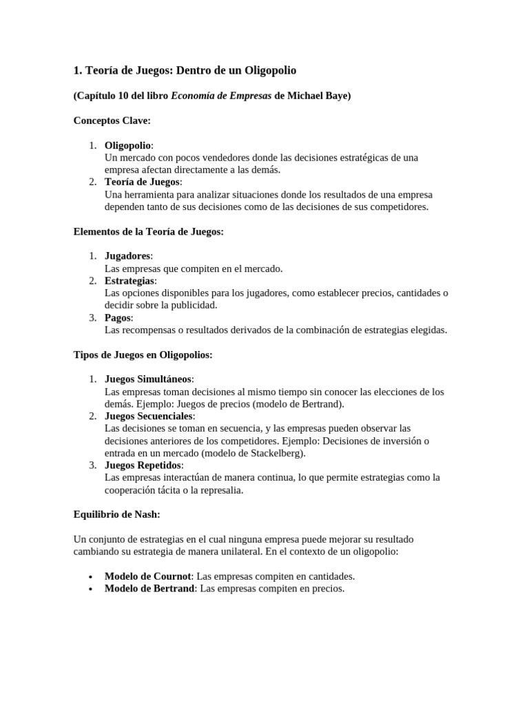 (Capítulo 10 del libro Economía de Empresas de Michael Baye)