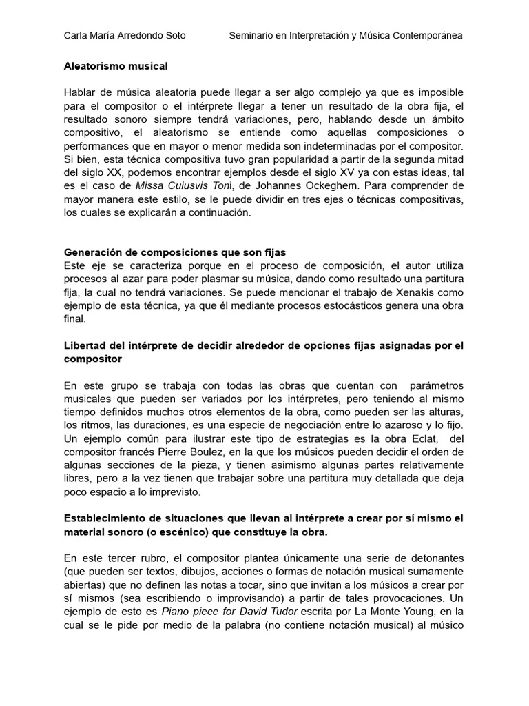 "Música Aleatoria: Técnicas y estilos en el siglo XX".