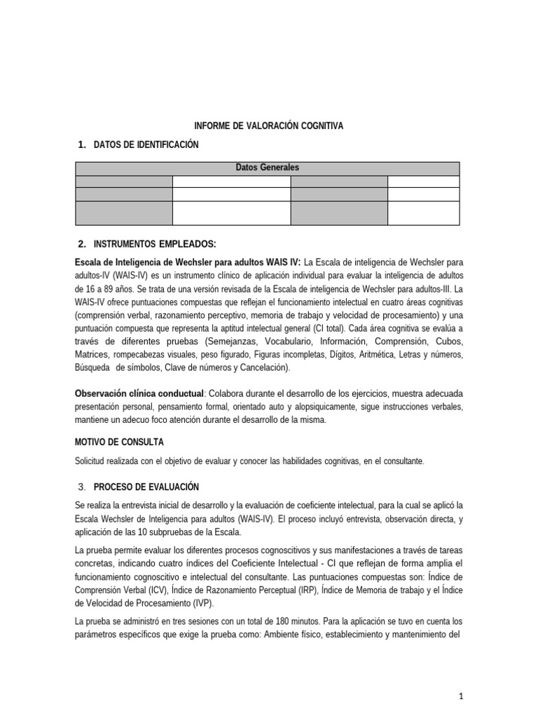 Solicitud realizada con el objetivo de evaluar y conocer las habilidades cognitivas, en el consultante.