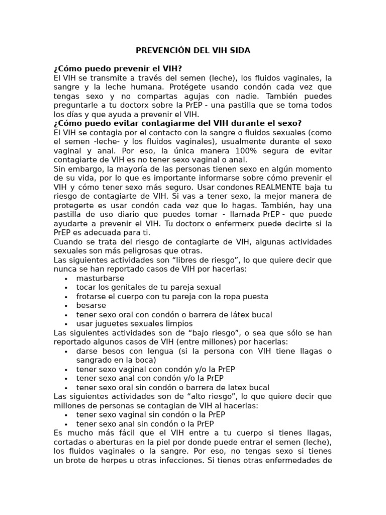 riesgo de contagiarte de VIH. Si vas a tener sexo, la mejor manera de
