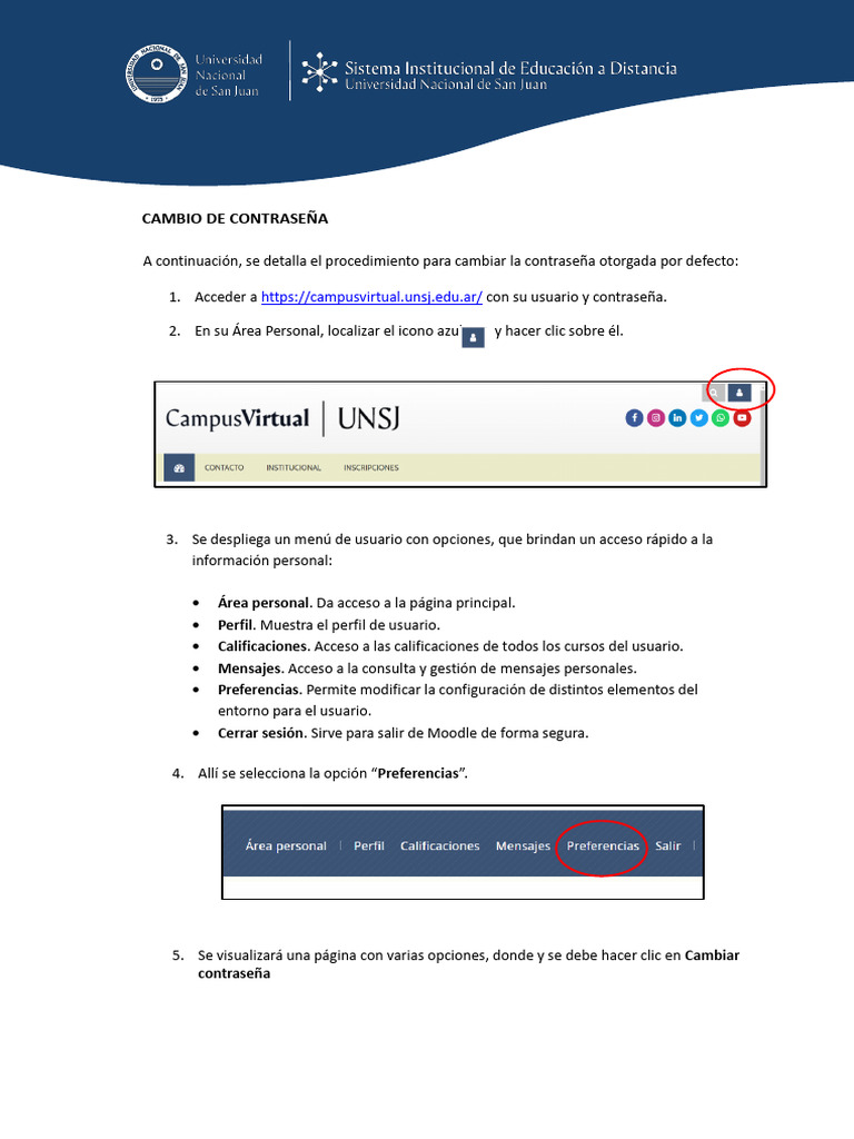 A continuación, se detalla el procedimiento para cambiar la contraseña otorgada por defecto: