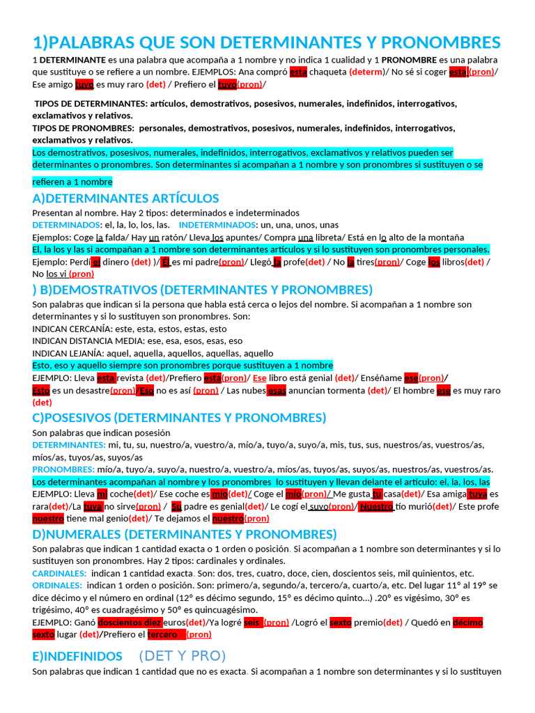 1)PALABRAS QUE SON DETERMINANTES Y PRONOMBRES