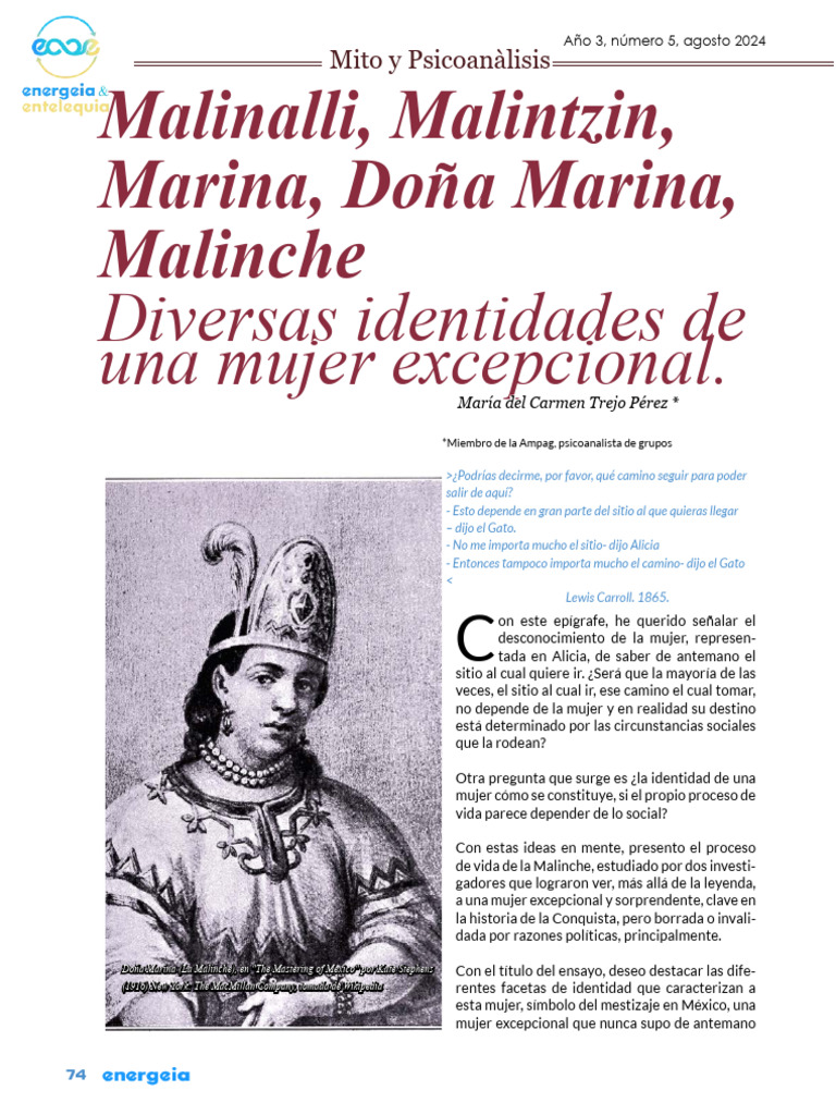 Doña Marina (La Malinche), en "The Mastering of Mexico" por Kate Stephens Con el título del ensayo, deseo destacar las dife-