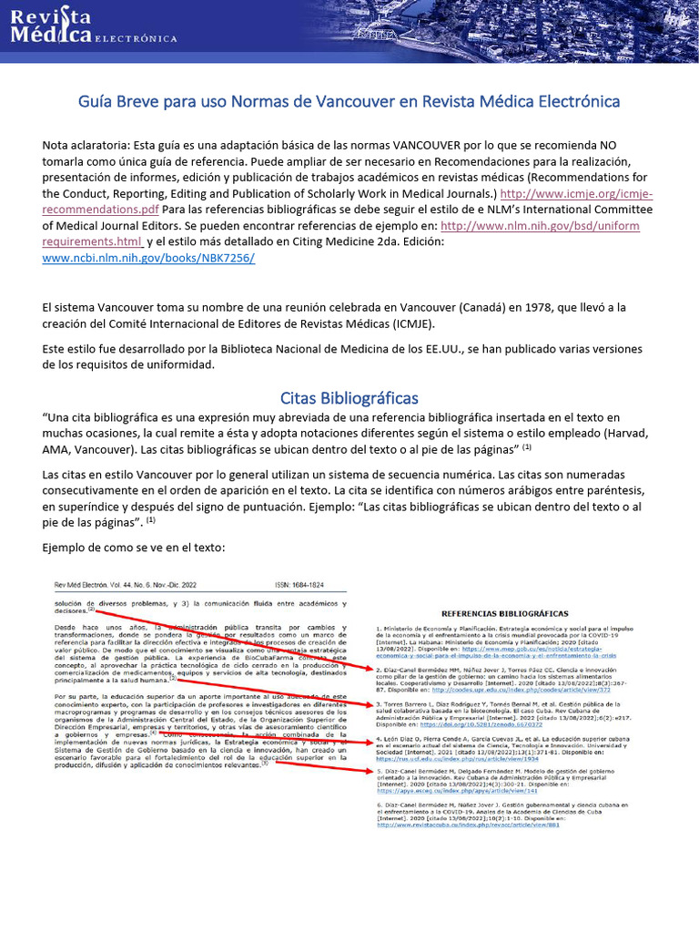 Guía Breve para uso Normas de Vancouver en Revista Médica Electrónica