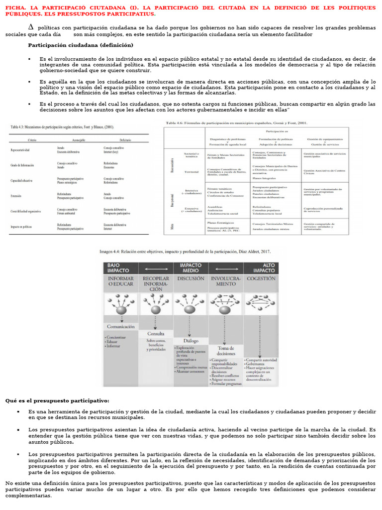 FICHA. LA PARTICIPACIÓ CIUTADANA (I).