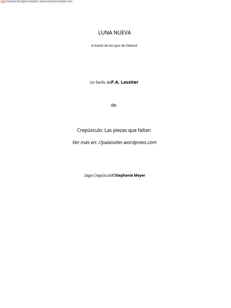 Algunos de los títulos de los capítulos y todos los diálogos no internos entre Edward y Bella son