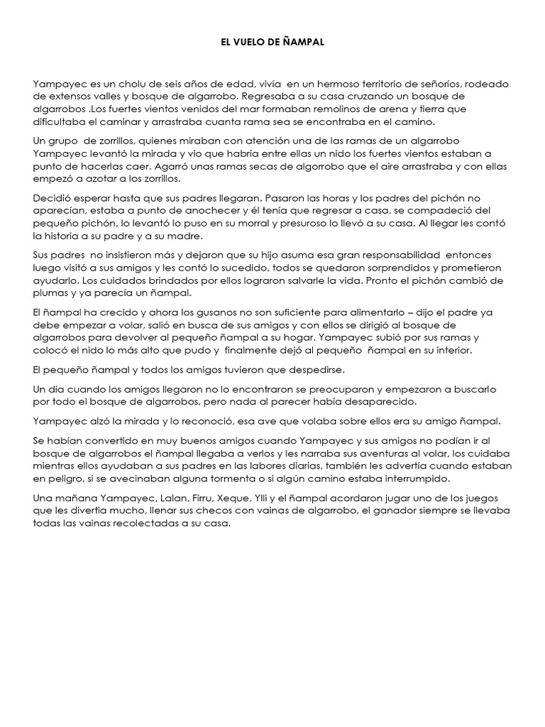 bosque de algarrobos el ñampal llegaba a verlos y les narraba sus aventuras al volar, los cuidaba