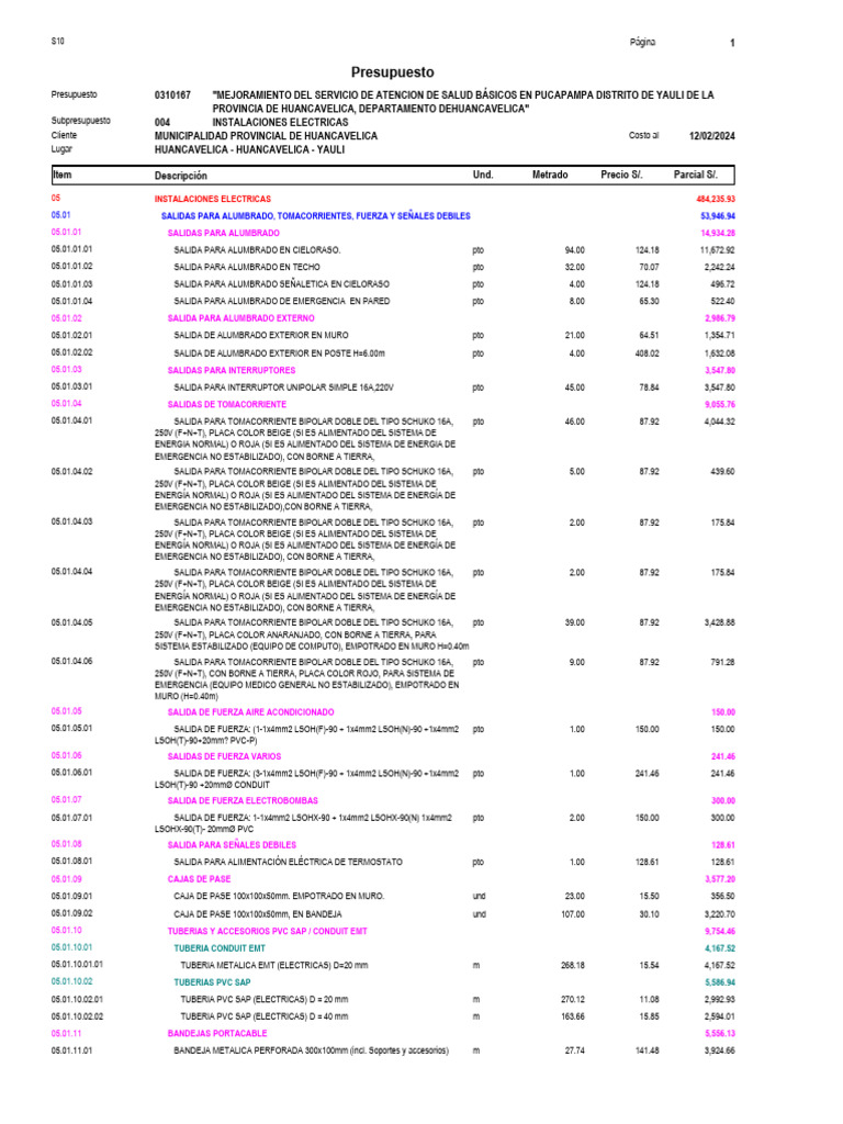 Subpresupuesto 004 INSTALACIONES ELECTRICAS