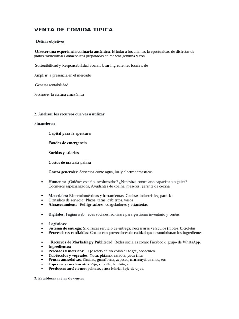 · Meta a largo plazo (12 meses): Introducir al menos 3nuevos platos típicos y ofrecer promociones