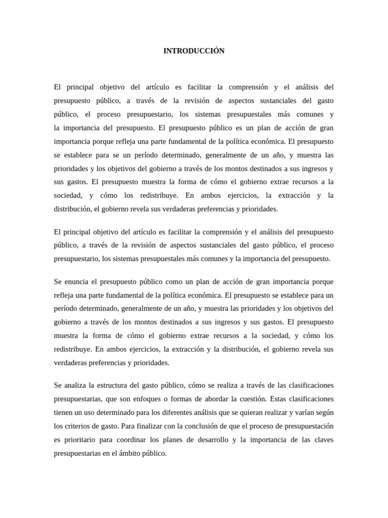 El principal objetivo del artículo es facilitar la comprensión y el análisis del presupuesto