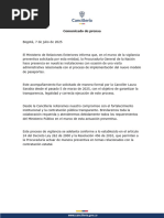 fue notificado a la Presidencia de la República por mensaje de correo electrónico