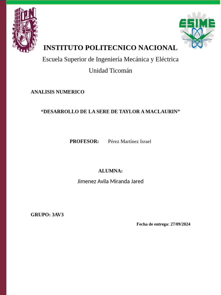 “DESARROLLO DE LA SERE DE TAYLOR A MACLAURIN”