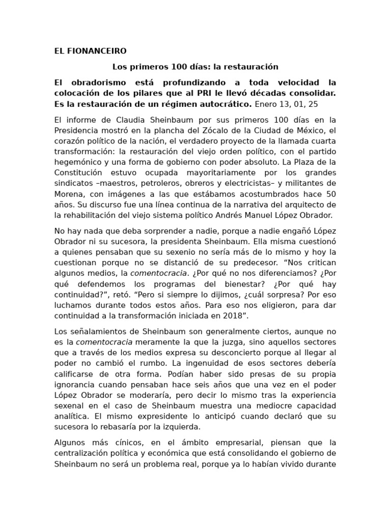 Es la restauración de un régimen autocrático. Enero 13, 01, 25