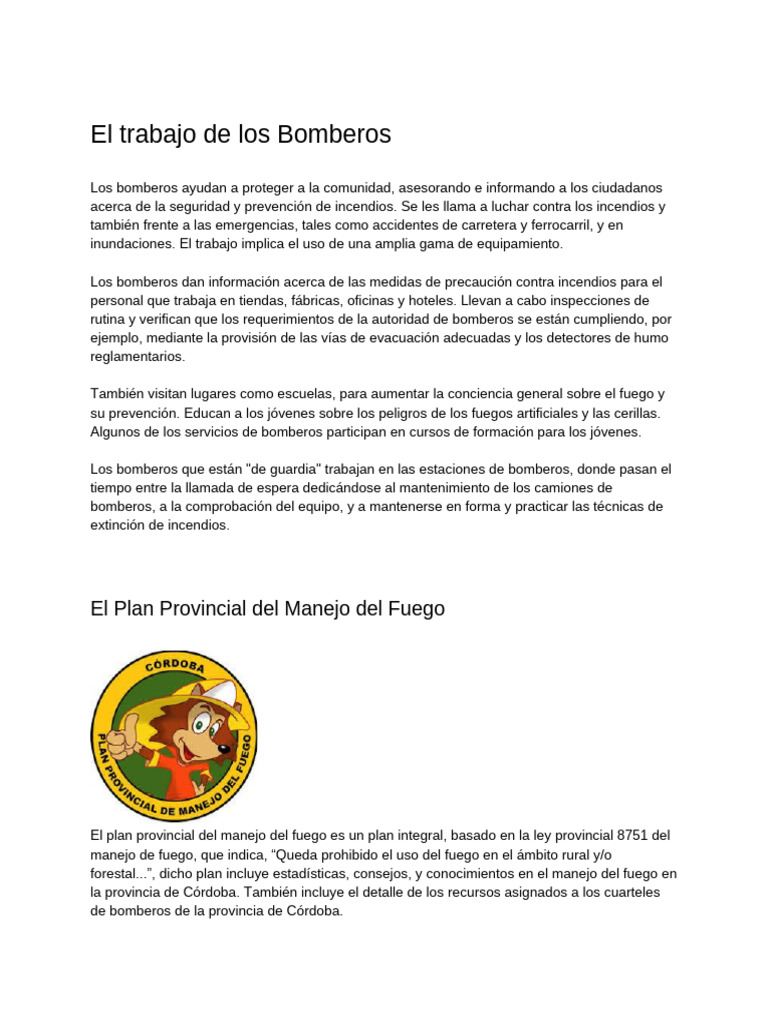 acerca de la seguridad y prevención de incendios. Se les llama a luchar contra los incendios y