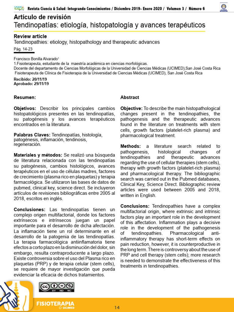 Palabras Claves: Tendinopatías, histología, pharmacological treatment.