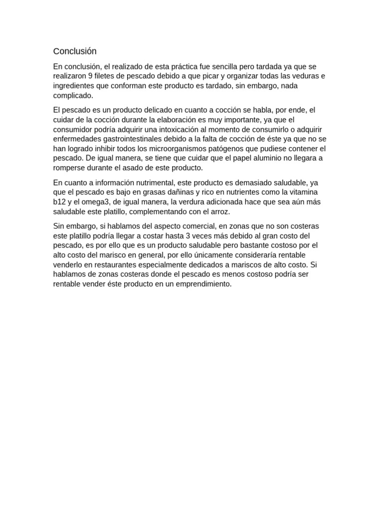 realizaron 9 filetes de pescado debido a que picar y organizar todas las veduras e