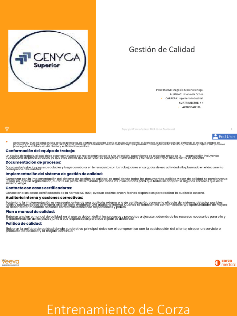 Comenzar con la implementación del sistema de gestión de calidad, es aquí donde todos los documentos, política y plan de calidad se comienzan a