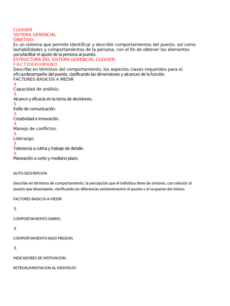 ESTRUCTURA DEL SISTEMA GERENCIAL CLEAVER.