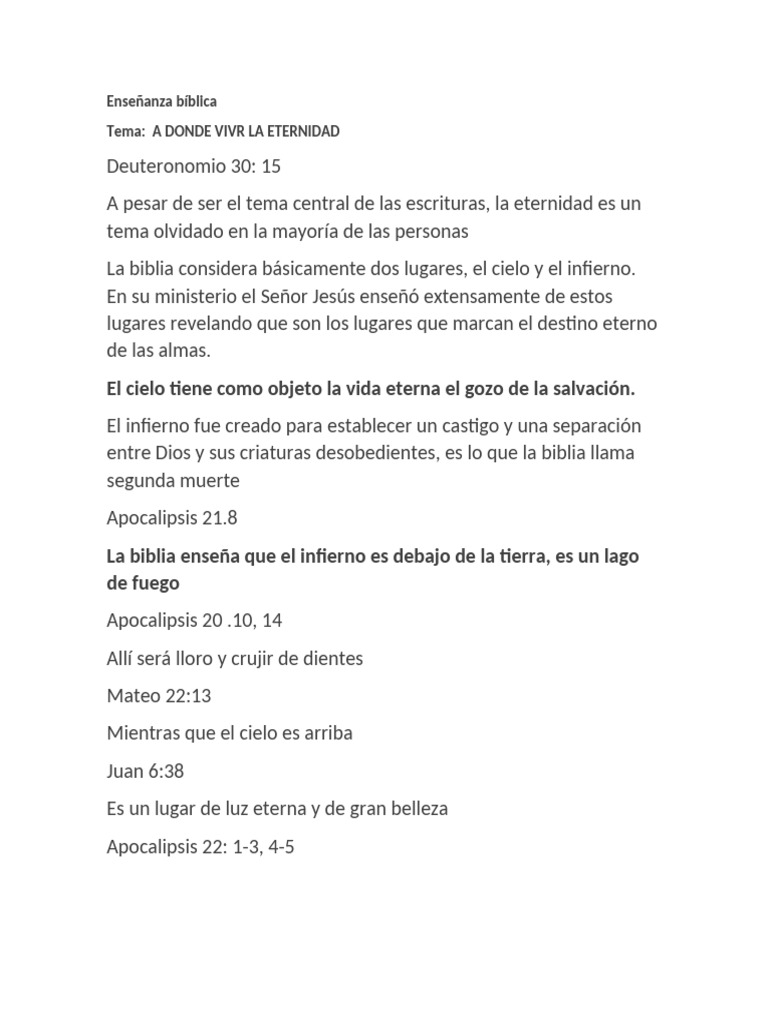La biblia considera básicamente dos lugares, el cielo y el infierno.