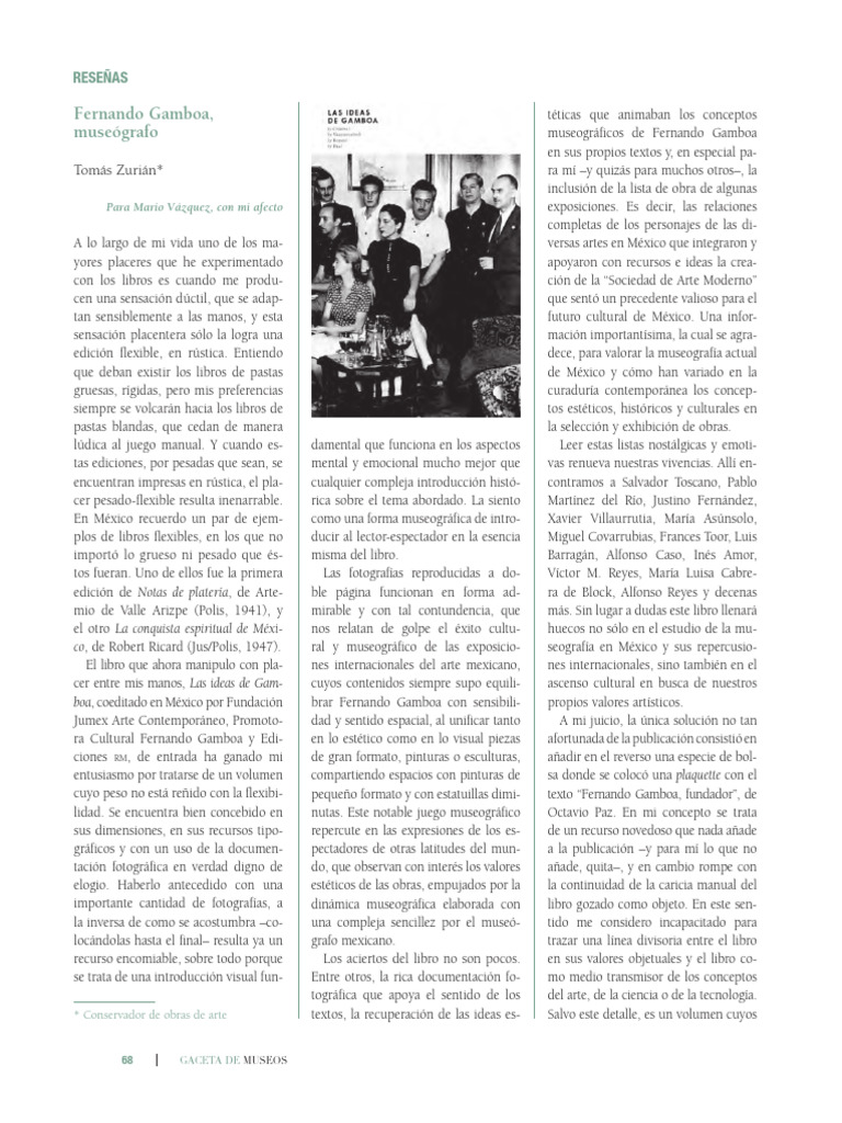 cuyo peso no está reñido con la flexibi- pequeño formato y con estatuillas dimi- texto “Fernando Gamboa, fundador”, de