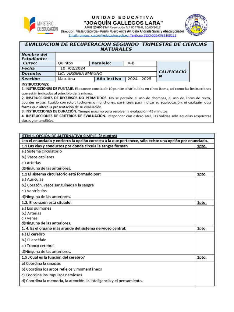 4. INSTRUCCIONES DE CRITERIOS DE EVALUACIÓN. Responder con esfero azul, las validas solo aquellas respuestas