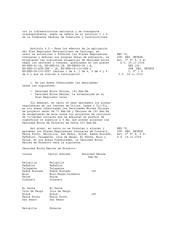 3.4. Densidad Bruta Mínima de 150 Hab/Há y Densidad D.O. 19.03.2002