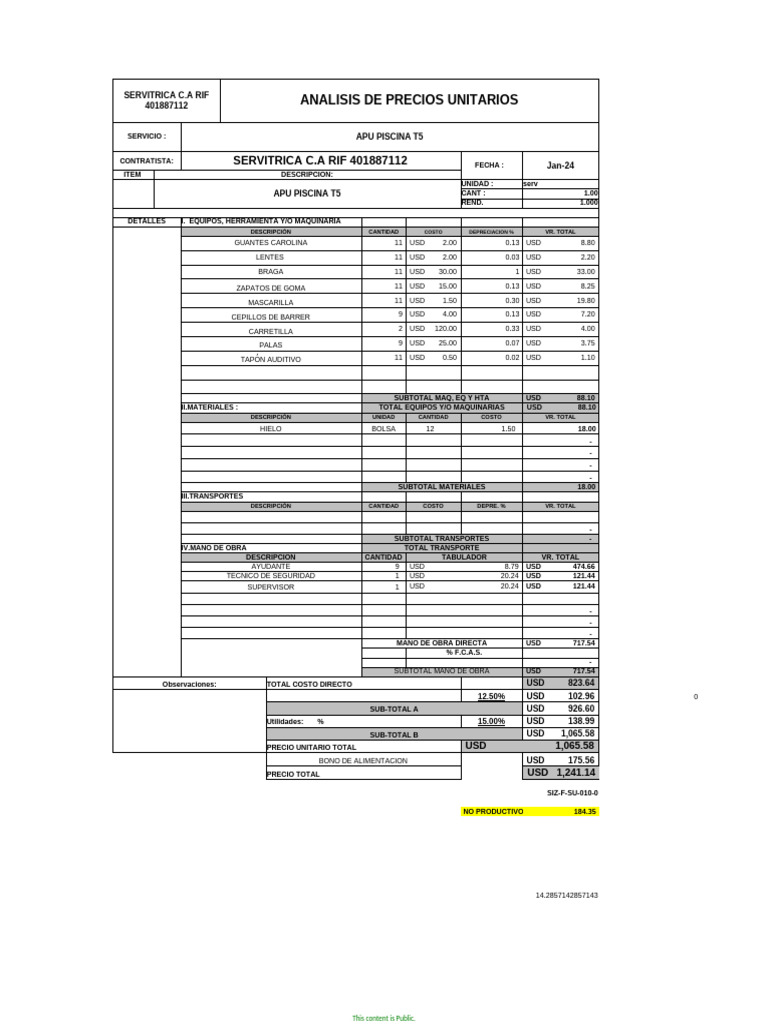 CONTRATISTA: SERVITRICA C.A RIF 401887112 FECHA : Jan-24