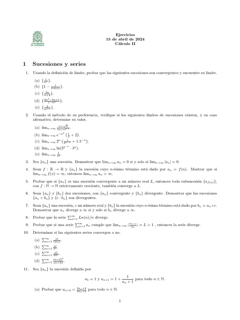 2. Usando el método de su preferencia, verifique si los siguientes lı́mites de sucesiones existen, y en caso