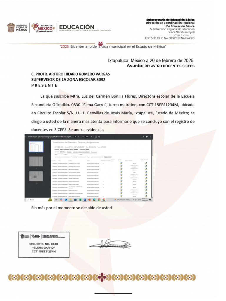 SUPERVISOR DE LA ZONA ESCOLAR S092