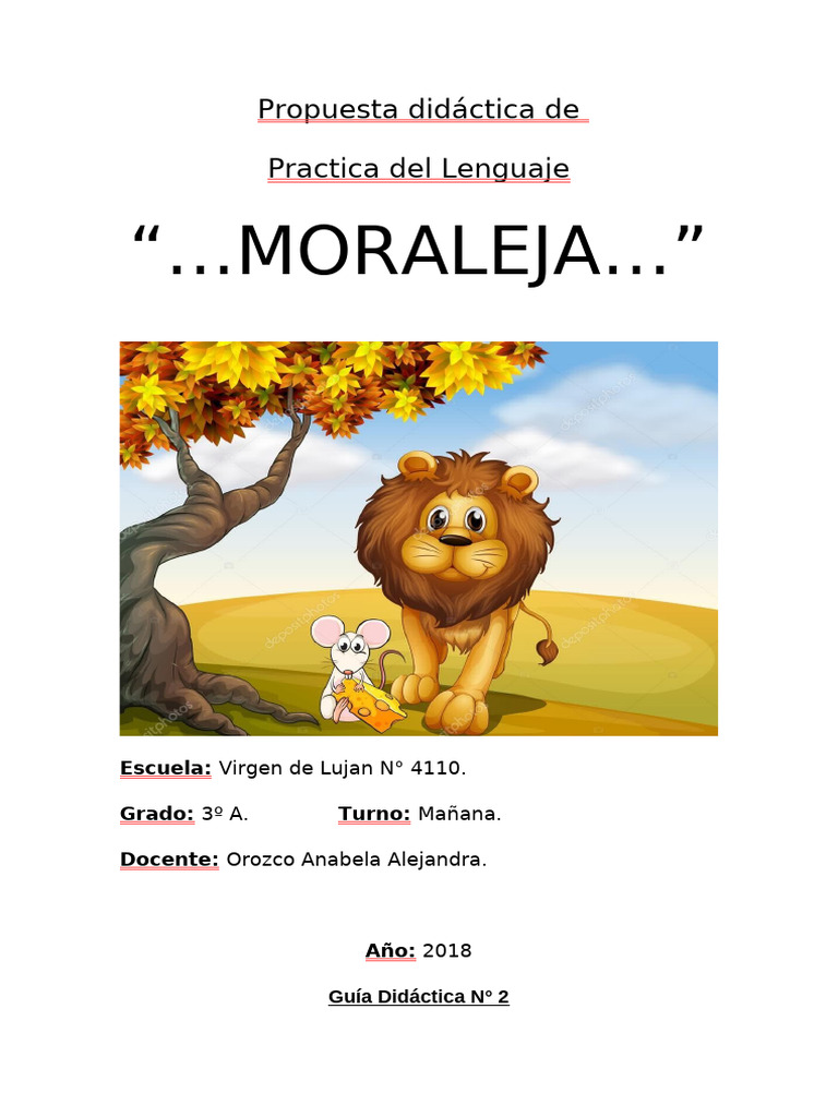 Se realizara la lectura de la fábula “el león y el ratón” entre todos los
