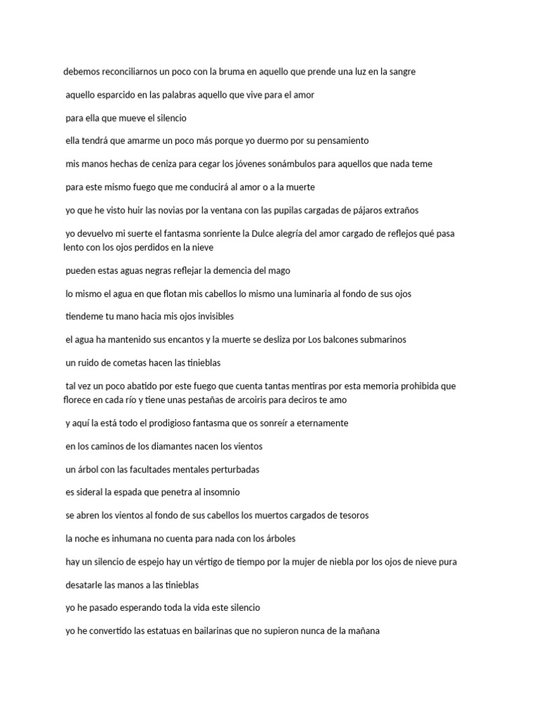 yo he convertido las estatuas en bailarinas que no supieron nunca de la mañana
