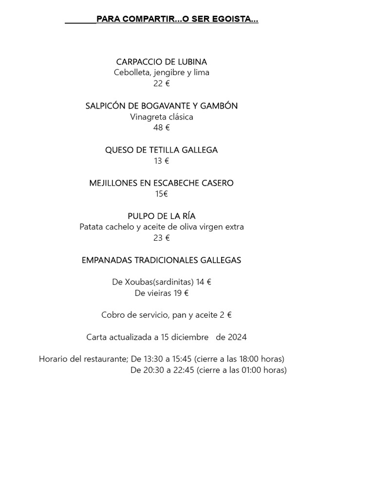 Carta actualizada a 15 diciembre de 2024