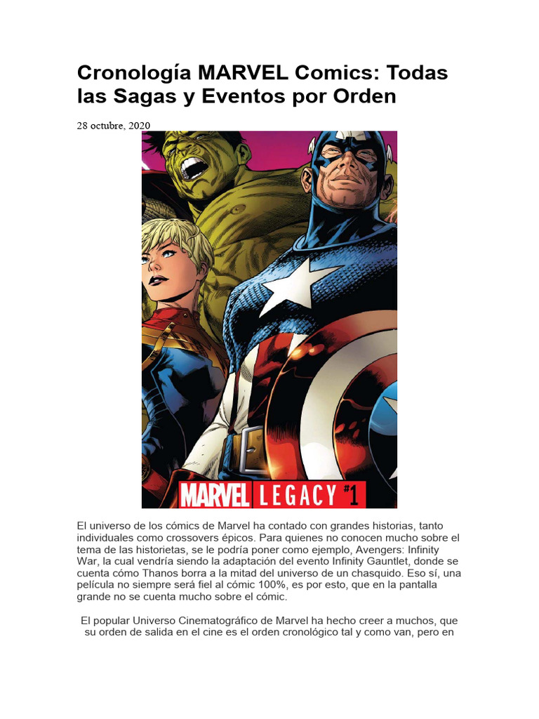 cronológico de las sagas y eventos de Marvel: