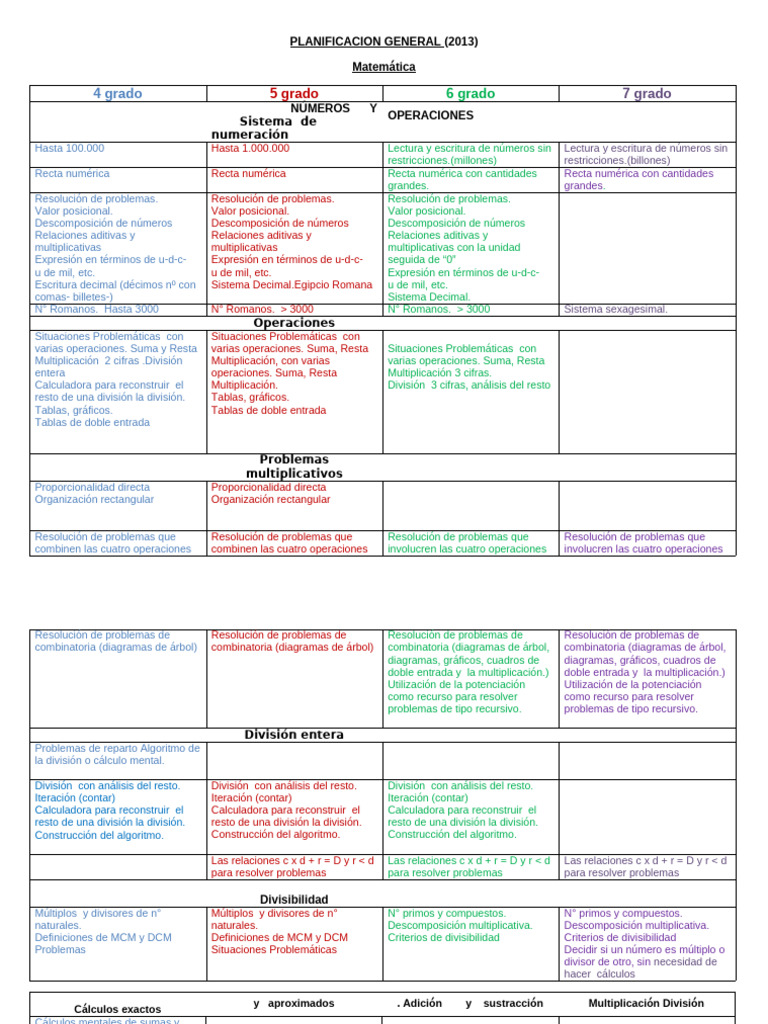 Planificación Matemática 4-7 Grado