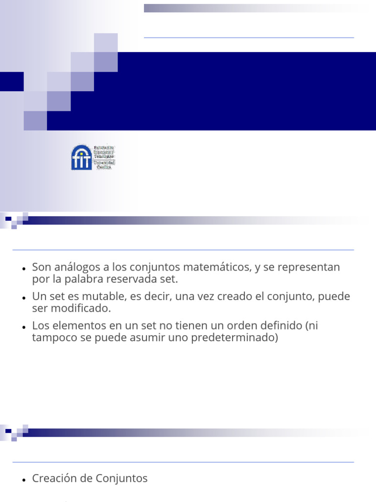 • Definir un conjunto vacío: > conj=set() (obs: no usar {}, ya que eso se
