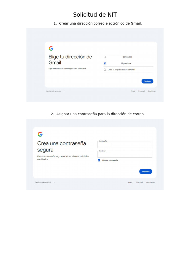 electrónico donde caerá un nuevo correo indicándole su nuevo número de NIT, el tiempo