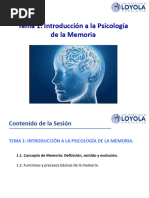 • Objetivo = Identificar las distintas estructuras y procesos de memoria y especificar cómo funcionan
